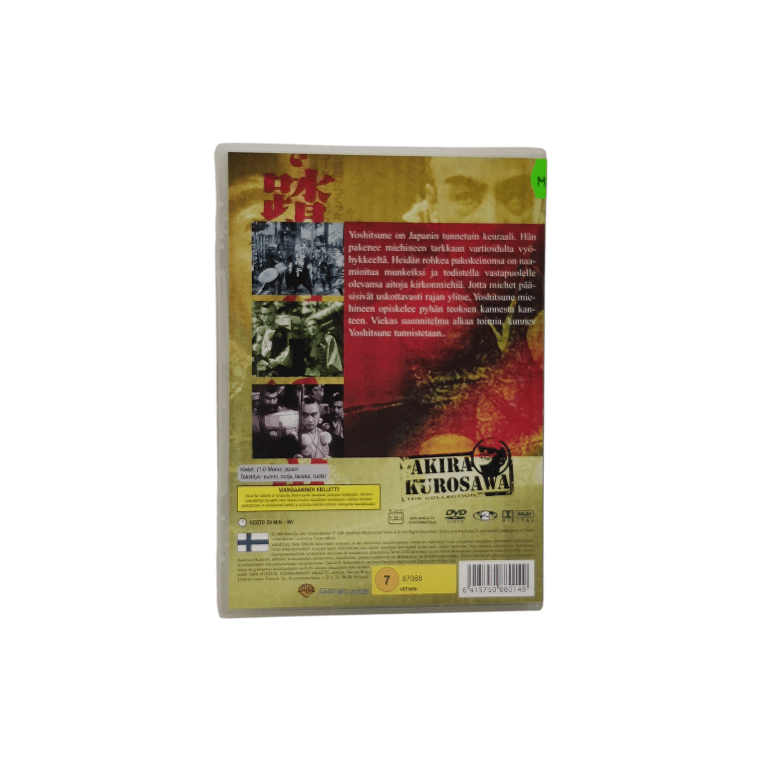 Huom! Suurin osa DVD-elokuvistamme on käytettyjä, mutta valitsemme myyntiin vain hyväkuntoiset yksilöt. Osa levyistä voi sisältää kevyitä hiusnaarmuja, ja koteloissa saattaa olla pientä kulumaa käytön jäljiltä.