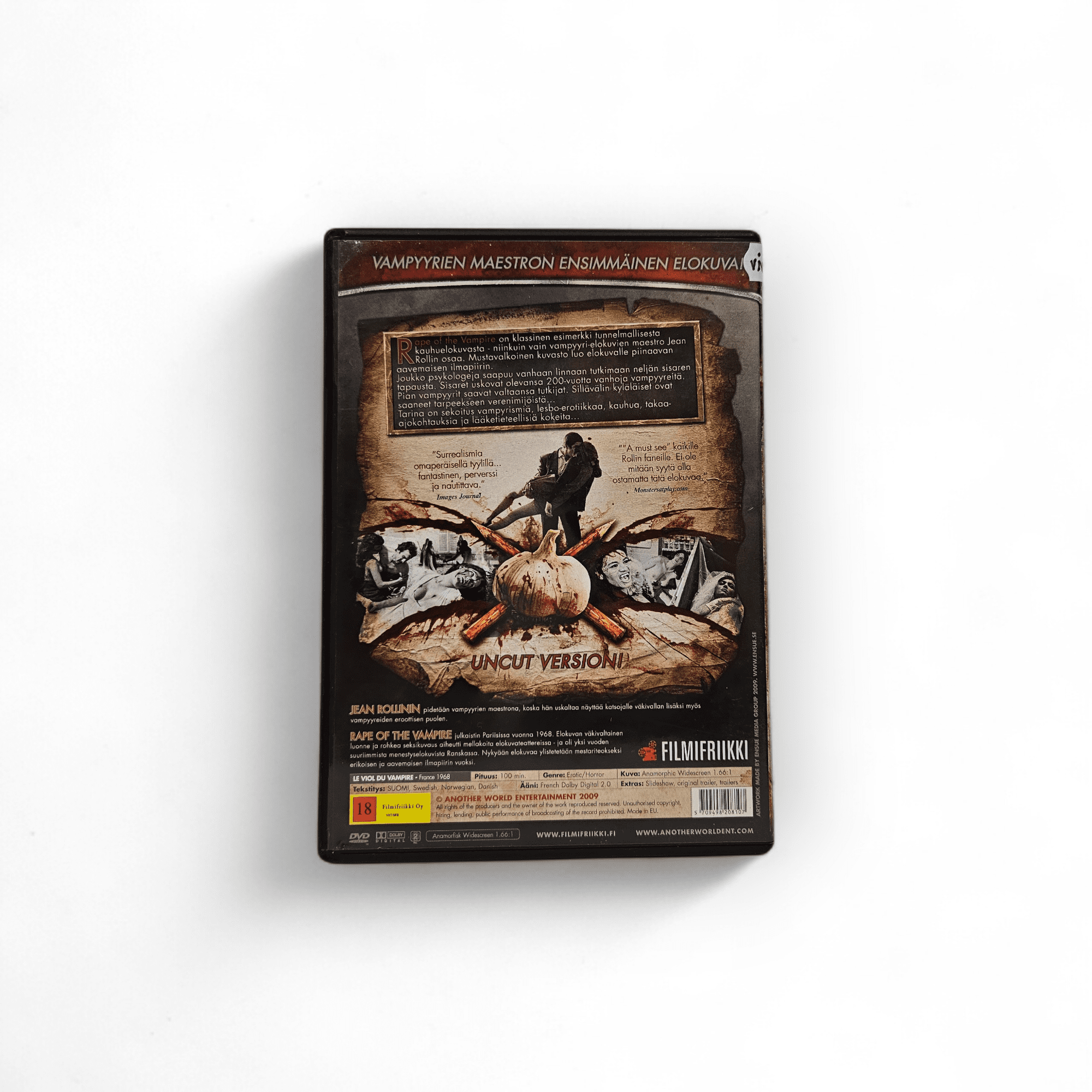 Huom! Suurin osa DVD-levyistämme on käytettyjä, mutta valitsemme myyntiin vain hyväkuntoiset yksilöt. Osa levyistä voi sisältää kevyitä hiusnaarmuja, ja koteloissa saattaa olla pientä kulumaa käytön jäljiltä.